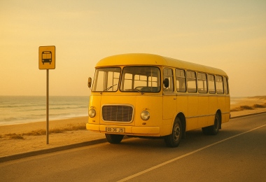Costa de Caparica sahilinden ayrıldık. Duraktayız. Hep birlikte Lizbon otobüsünü bekliyoruz. Hava...